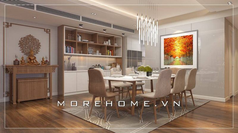 Thiết kế phòng thờ hiện đại với một mẫu bàn thờ gỗ tự nhiên cao cấp.