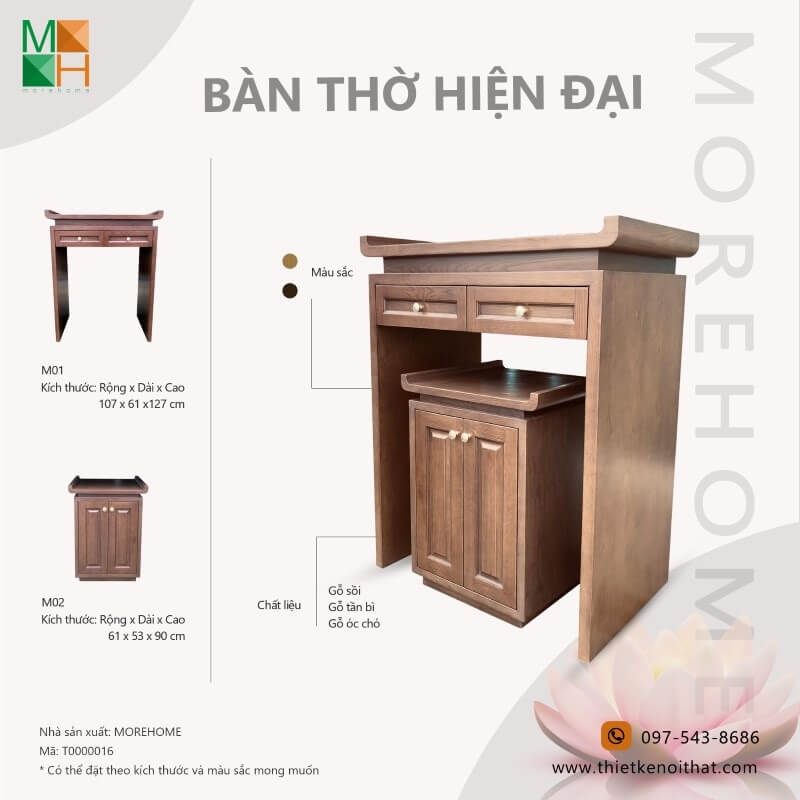 Mẫu bàn thờ đứng kết hợp tủ thờ bằng gỗ sồi kèm tủ thờ nhỏ để lưu trữ những đồ thờ cúng được thiết kế kiểu dáng hiện đại