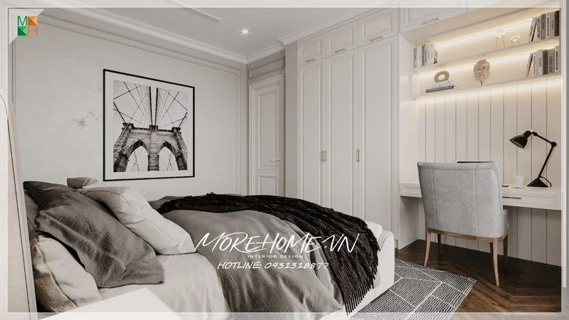 Bức tranh canvas nghệ thuật tông đen trắng làm cho không gian phòng ngủ có một điểm nhấn ấn tượng và thêm thẩm mỹ.
